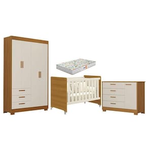 Quarto de Bebê Zaki e Berço Americano Evolution 4 em 1 Areia Acetinado Savana com Colchão Gazin - Reller