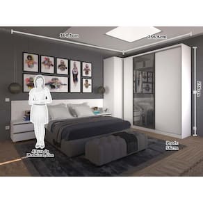 Quarto de Canto Casal com 5 Módulos e Vidro Reflecta Prime Plus Luciane Móveis - Branco