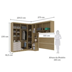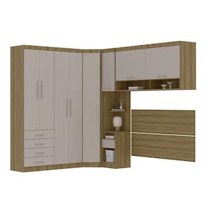 Informacoes Complementares: Dobradicas reforcadas. Guarda Roupa de Canto necessita de recuo para montagem. Consulte o manual de montagem. Alguns modulos podem ser montados com abertura para o lado Direito ou Esquerdo. Consulte o manual de montagem. Indicado para uso com Cama/Conjunto Box Casal/Queen -165cm-. Cama/Box nao acompanha o ambiente, a imagem e meramente ilustrativa.