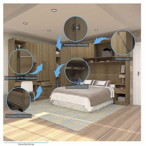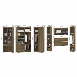 Informações Complementares: Dobradiças reforçadas. Guarda Roupa de Canto necessita de recuo para montagem. Verifique a planta baixa. Alguns módulos podem ser montados com abertura para o lado Direito ou Esquerdo. Consulte o manual de montagem. Cadeira não acompanha o ambiente, a imagem é meramente ilustrativa.