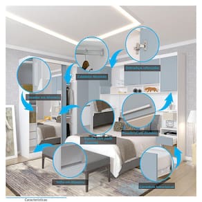 Informações Complementares: Trilhos em Alumínio. Dobradiças reforçadas. 1 Porta com moldura em Alumínio Anodizado e Espelho. Mesas de Cabeceira podem ser montadas com abertura para o lado Direito ou Esquerdo. Alguns itens necessitam de recuo para montagem. Verifique a planta baixa.