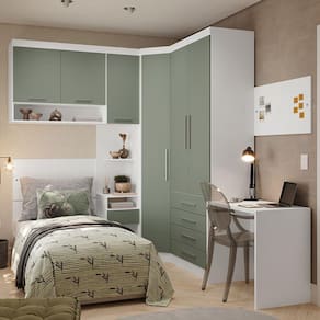 Ambiente composto por: ? 1 Mesa de Cabeceira Alta 38cm 1 Porta e 1 Gaveta Alpes Luciane Móveis 230 x 38 x 41,5 -Alt x Larg x Prof - cm- ? 1 Painel Cabeceira Solteiro 97cm Uni Alpes Paris Luciane Móveis 90 x 97 x 1,5 -Alt x Larg x Prof - cm- ? 1 Armário Aéreo Maleiro Modulado 97cm 2 Portas Alpes Luciane Móveis 82 x 97 x 41,5 -Alt x Larg x Prof - cm- ? 1 Guarda Roupa de Canto Diagonal Modulado 70cm 1 Porta Alpes Luciane Móveis 230 x 70 x 70 -Alt x Larg x Prof - cm- ? 1 Guarda Roupa Modulado 90cm 2 Portas e 4 Gavetas Alpes Luciane Móveis 230 x 90 x 46,5 -Alt x Larg x Prof - cm- ? 1 Escrivaninha Multiuso Compacta com Painel 80cm Prime Luciane Móveis Escrivaninha: 74 x 80 x 50 e Painel: 50 x 80 x 1,5 -Alt x Larg x Prof - cm-