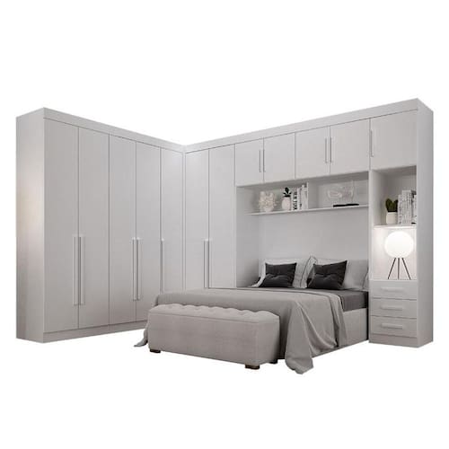 Quarto de Casal Modulado 12 Portas Orion Branco – Leifer Móveis