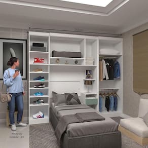 Ambiente composto por: 1 Mesa de Cabeceira Alta 38cm 1 Porta e 1 Gaveta Alpes Luciane Moveis 230 x 38 x 41,5 (Alt x Larg x Prof - cm) 1 Painel Cabeceira Solteiro 97cm Uni Alpes Paris Luciane Moveis 90 x 97 x 1,5 (Alt x Larg x Prof - cm) 1 Armario Aereo Maleiro Modulado 97cm 2 Portas Alpes Luciane Moveis 82 x 97 x 41,5 (Alt x Larg x Prof - cm) 1 Guarda Roupa Modulado 79cm 2 Portas Alpes Luciane Moveis 230 x 79 x 46,5 (Alt x Larg x Prof - cm) 1 Guarda Roupa Sapateira Modulado 50cm 1 Porta Alpes Luciane Moveis 230 x 50 x 37,5 (Alt x Larg x Prof - cm)