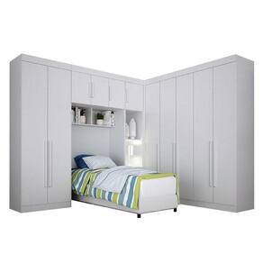 Quarto de Solteiro Modulado 11 Portas Orion Branco Leifer Móveis