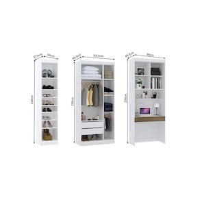Ambiente composto por: ? Bancada de Estudos Modulada 90cm 1 Porta e 1 Gaveta Alpes Luciane Móveis 230 x 90 x 46,5 -Alt x Larg x Prof - cm- ? Guarda Roupa Modulado 101,50cm 3 Portas Alpes Luciane Móveis 230 x 101,5 x 46,5 -Alt x Larg x Prof - cm- ? Guarda Roupa Sapateira Modulado 50cm 1 Porta Alpes Luciane Móveis 230 x 50 x 37,5 -Alt x Larg x Prof - cm-