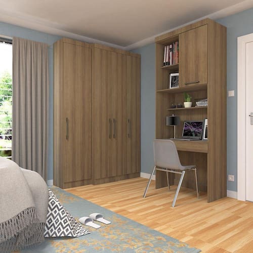 Ambiente composto por: 1 Bancada de Estudos Modulada 90cm 1 Porta e 1 Gaveta Paris Luciane Moveis 230 x 90 x 46,5 (Alt x Larg x Prof - cm) 1 Guarda Roupa Modulado 101,50cm 3 Portas Paris Luciane Moveis 230 x 101,5 x 46,5 (Alt x Larg x Prof - cm) 1 Guarda Roupa Sapateira Modulada 50cm 1 Porta Paris Luciane Moveis 230 x 50 x 37,5 (Alt x Larg x Prof - cm)