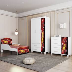 Jogo de Quarto Infantil Com Mini Cama 3 Peças Carro Vermelho Z53 - Mpozenato