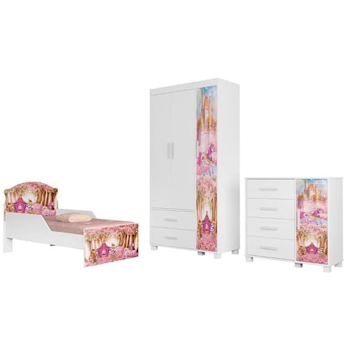 Conteúdo da Embalagem: Cama/Guarda Roupa/Cômoda.