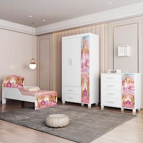 Para completar, a Cômoda Infantil com quatro gavetas e uma porta oferece espaço de sobra para manter tudo no lugar. Funcional e linda, ela acompanha a mesma temática alegre e colorida, criando um conjunto harmonioso que vai conquistar pais e filhos. É o quartinho dos sonhos pronto para ser vivido!