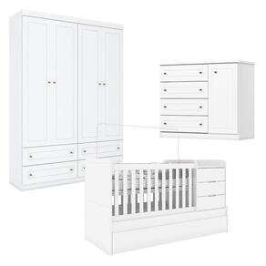 Quarto Infantil 4 Portas Mississipi com Berço Multifuncional Cleo Branco Fosco - Henn