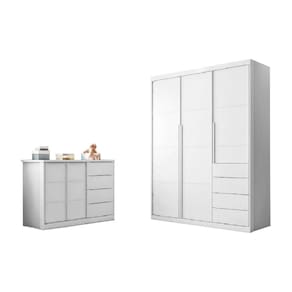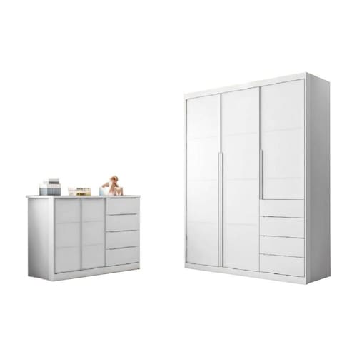 Quarto Infantil Bebê Perola Cômoda e Guarda Roupa MDF - Phoenix Baby Encanto define essa linha de móveis! Delicada e cheia de detalhes, com certeza é uma ótima opção para o quartinho de seu bebê! A Guarda Roupa Infantil Bebê Pérola 4 Gavetas 3 Portas e Cômoda Infantil Pérola 4 Gavetas 2 Porta vão ficar perfeita no quarto do seu bebê. Suas gavetas são feitas com corrediças metálicas que proporcionam maior conforto e durabilidade, no movimento de abrir e fechar, além de conter varias portas , para guardar fraldas, lenços umedecidos e mais o que achar necessário! Confira!