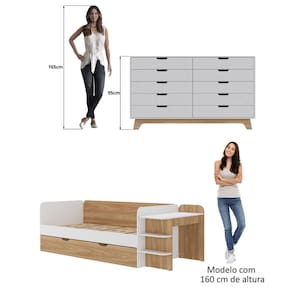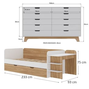 Juntos, formam um conjunto sofisticado, versátil e seguro, perfeito para acompanhar o crescimento das crianças com design moderno e qualidade premium. Altura do Conjunto: 95 cm Ambiente Principal: Quarto Infantil codigo_ean: 7900288263872 Complexidade da Montagem: Média: pode ser montado por mais de uma pessoa e/ou necessite de maior conhecimento para montagem Cor: Branco/ Louro Freijó Grann Cor do Produto: Branco/ Louro Freijó Grann Escala de Brilho: Fosco Informações Complementares: Limpar somente com um pano levemente umedecido. Indicado para ambientes internos. Largura do Conjunto: 233 cm Linha ou Coleção: Helena / Alice Manual de Montagem e Instalação: https://cdn2.madeiramadeira.com.br/atributo/ferpa-wood/3265743-6578-1759924144371.pdf Marca: FD Material Principal: MDF Medida de Cada Item: Cama: 233 cm x 93 cm x 75 cm, Cômoda: 160 cm x 95 cm x 40 cm modular: Não Necessita Montagem: Sim O Conjunto Contém: Cama/Cômoda Origem do Produto: Nacional Peso: Cama: 90kg, Cômoda: 81kg Pintura Atóxica: Não Possui Portas: Não Recomendações de Uso, Manutenção e Limpeza: Limpar somente com um pano levemente umedecido. Indicado para ambientes internos Sistema de Montagem: Parafusos, cavilhas e minifix Suporta Até (kg): 80