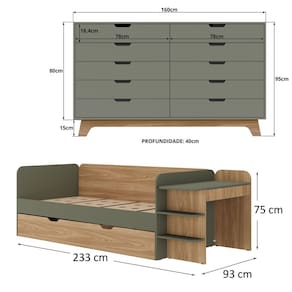 Juntos, formam um conjunto sofisticado, versátil e seguro, perfeito para acompanhar o crescimento das crianças com design moderno e qualidade premium. Altura do Conjunto: 95 cm Ambiente Principal: Quarto Infantil codigo_ean: 7900288263797 Complexidade da Montagem: Média: pode ser montado por mais de uma pessoa e/ou necessite de maior conhecimento para montagem Cor: Verti/Louro Freijó Grann Cor do Produto: Verti/Louro Freijó Grann Escala de Brilho: Fosco Informações Complementares: Limpar somente com um pano levemente umedecido. Indicado para ambientes internos. Largura do Conjunto: 233 cm Linha ou Coleção: Helena / Alice Manual de Montagem e Instalação: https://cdn2.madeiramadeira.com.br/atributo/ferpa-wood/3265743-6578-1759924144371.pdf Marca: FD Material Principal: MDF Medida de Cada Item: Cama: 233 cm x 93 cm x 75 cm, Cômoda: 160 cm x 95 cm x 40 cm modular: Não Necessita Montagem: Sim O Conjunto Contém: Cama/Cômoda Origem do Produto: Nacional Peso: Cama: 90kg, Cômoda: 81kg Pintura Atóxica: Não Possui Portas: Não Recomendações de Uso, Manutenção e Limpeza: Limpar somente com um pano levemente umedecido. Indicado para ambientes internos Sistema de Montagem: Parafusos, cavilhas e minifix Suporta Até (kg): 80