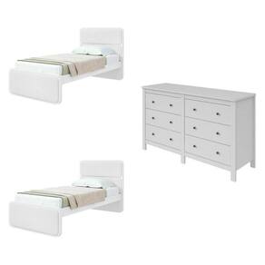 Quarto Infantil com 2 Camas de Solteiro Loop e 1 Mesa de Cabeceira Maggiore Branco