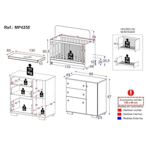 Berço - Altura: 80,5cm | Largura: 133cm | Profundidade: 66cm