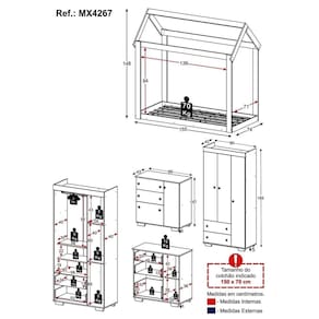 *Obrigatório fixar a cômoda e guarda-roupa na parede.