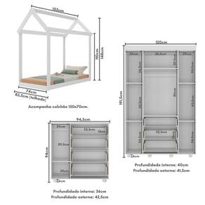 Transforme o quarto do seu pequeno em um espaço encantador e funcional com o Quarto Infantil com Cama Montessoriana e Colchão Incluso Pimpolho Multimóveis MX4270. Este conjunto, produzido em MDP/MDF, apresenta um acabamento acetinado (cerca de 20% de brilho) que traz um toque de sofisticação e modernidade. A cama montessoriana, com seu design diido em forma de casinha, não apenas proporciona um lugar para dormir, mas também estimula a imaginação e a brincadeira, suportando até 70kg. Acompanha colchão D20 macio, tamanho 150x70cm, com tratamento antiácaro e antialérgico, proporcionando noites de sono mais tranquilas e saudáveis. O guarda-roupas é um verdadeiro destaque, com 4 portas que abrem para um espaço amplo, incluindo prateleiras e um cabideiro, perfeito para organizar todas as roupinhas e acessórios do seu filho. Além disso, conta com 3 gavetas que deslizam suavemente graças às corrediças metálicas, e portas com detalhes em vidro incolor que adicionam um charme extra ao ambiente. Complementando o conjunto, a cômoda é igualmente funcional, dispondo de 1 porta com prateleira e cabideiro, além de 4 gavetas com corrediças metálicas que garantem fácil acesso e organização. Assim como o guarda-roupas, a cômoda também possui uma porta com detalhes em vidro incolor, unindo estilo e praticidade. Para a do seu pequeno, tanto o guarda-roupas quanto a cômoda vêm equipados com um sistema antitombamento, oferecendo tranquilidade para os pais. Com esse conjunto, você garante não apenas um espaço bonito, mas também e para o desenvolvimento da sua criança.