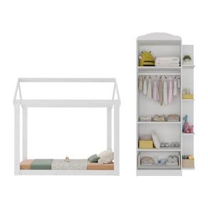O Quarto Infantil com Cama Montessoriana e Guarda-Roupas João e Maria Multimóveis MX4271 é ideal para criar um ambiente funcional, acolhedor e diido no quarto das crianças. Produzido em MDP com acabamento acetinado (cerca de 20% de brilho), o conjunto garante resistência e praticidade, além de um design encantador. A cama infantil suporta até 70kg e possui um charmoso formato de casinha, que estimula a imaginação, tornando o ambiente mais criativo e acolhedor. Não acompanha colchão (tamanho indicado 150x70cm). O guarda-roupas é compacto e funcional, com 2 portas e 1 gaveta, corrediças metálicas e puxadores em ABS, garantindo durabilidade e facilidade de uso. As prateleiras externas organizam brinquedos ou exibem objetos decorativos, embelezando o quarto com praticidade. O guarda-roupas também vem com cabideiro que suporta até 3kg, ideal para roupas e acessórios. Além disso, o guarda-roupas é , com detalhes personalizáveis em 4 cores (branco, cinza, rosa e azul), permitindo que você escolha a opção que melhor combina com a decoração do ambiente. Esse conjunto é perfeito para quem busca um quarto funcional, diido e cheio de estilo, oferecendo conforto e praticidade para o dia a dia das crianças.
