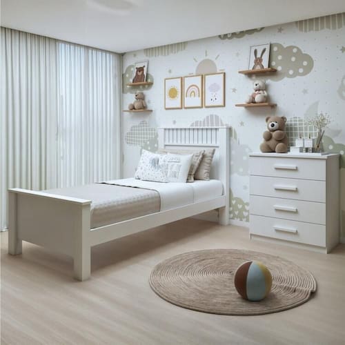 Dê vida ao quarto dos pequenos com nosso conjunto de moveis para quarto de criança! excelência para aproveitar o espaço, a cama combina com qualquer decoração, enquanto as gavetas guardam objetos do dia a dia. A cômoda garante um toque mágico à arrumação, mantendo tudo no seu devido lugar e ao alcance das mãos pequenas. Feitos com materiais duráveis, nossos móveis são excelências para acompanhar o crescimento das crianças, tornando o quarto infantil um lugar proteção e cheio de charme. É ideal na decoração para quarto de menina? Sim, é excelência para meninas e na decoração para quarto de meninos. Serve na decoração para quarto pequeno? Sim. Os móveis para quarto infantil podem ser utilizados em outro ambiente? Sim, basta usar a criatividade.