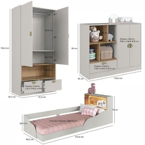 Surpreenda o seu filho com o quarto Infantil montessoriano com Iluminação LED LILLE da marca Art In Móveis. Este conjunto é composto por uma linda cama com luzes led, um roupeiro e uma cômoda bem espaçosa. No quesito camas, um modelo com inovação, beleza e segurança para criançada. Este conjunto foi produzido em excelente material MDP com acabamento Finish Foil Fosco, que garante maior resistência e qualidade em seu móvel. A essência de criar soluções que trazem mais conforto à sua vida é o grande diferencial dos produtos Art In Móveis. Cada nova ideia é uma mistura de criatividade, funcionalidade e muita dedicação. Altura do Conjunto: 184,4 cm Ambiente Principal: Quarto Infantil codigo_ean: 7900288145345 Complexidade da Montagem: Média: pode ser montado por mais de uma pessoa e/ou necessite de maior conhecimento para montagem Cor: Arenas Cor do Produto: Arenas Escala de Brilho: Fosco Largura do Conjunto: 112,6 cm Linha ou Coleção: Lille Manual de Montagem e Instalação: https://cdn2.madeiramadeira.com.br/atributo/art-in-moveis/2917990-5225-174688033062.pdf Marca: Art in Móveis Material Principal: MDP Medida de Cada Item: Cama: 70cm x 86,2 x 214,4 Cômoda: 89 x 112,6 x 40 Guarda- Roupas: 184,4 x 91,4 x 45,3 modular: Não Necessita Montagem: Sim O Conjunto Contém: Cama/Cômoda/Guarda-Roupa Origem do Produto: Nacional Peso: Cama: 33,6kg, Cômoda: 38,1kg, Guarda-Roupas: 56,8kg Pintura Atóxica: Não Porta Janelada: Não Possui Portas: Sim Quantidade de Portas: 04 Recomendações de Uso, Manutenção e Limpeza: Para a limpeza do móvel utilizar pano levemente umedecido Sistema de Montagem: Parafusos, cavilhas e minifix Suporta Até (kg): Cama: 200kg Guarda-Roupas: 40kg Cômoda: 55kg