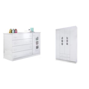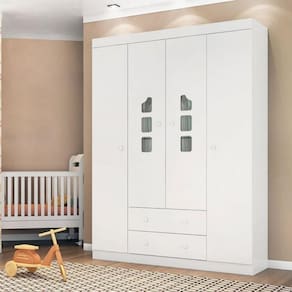 1x Guarda Roupa Infantil 4 Portas 2 Gavetas Lívia Branco Largura: 147 cm Altura: 203 cm Peso: 83 kg Profundidade: 45 cm Necessita Montagem: Sim
