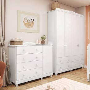 1 Cômoda 113 x 120,30 x 50,30 (AxLxP - cm) Possui Rodízio: Não Altura do Conjunto: 231.1 cm Ambiente: null Ambiente Principal: Quarto Infantil Cor: Branco Brilho Informação Complementar: 1x Guarda Roupa de Bebê 4 Portas 4 Gavetas Maya Clássico Branco Largura: 156,8 cm Altura: 231,1 cm Peso: 113,8 kg Profundidade: 49,3 cm Necessita Montagem: Sim
