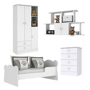 O(a) Quarto Infantil Completo Anjinho 5 Portas 6 Gavetas Branco - Percasa é produzido em MDP na escala de brilho Semi-Brilho, e possui um grau de dificuldade de montagem: Médio.