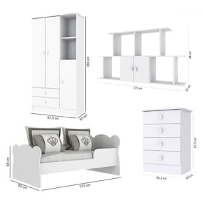 - Acompanha: Mini cama + Guarda-Roupa + Cômoda + Nicho + Kit Ferragens + Manual de Montagem