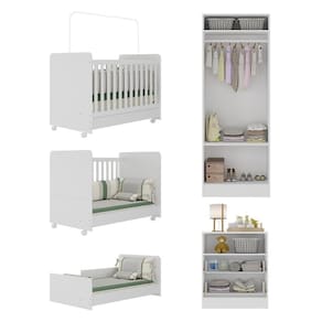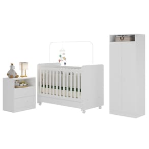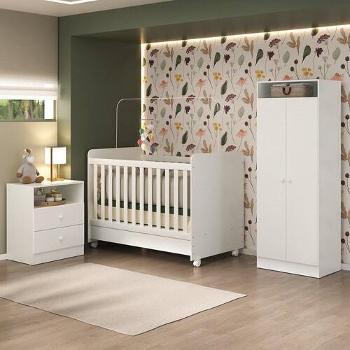 O Quarto Infantil Completo Ariel Multimóveis é produzido em MDP, que garante maior durabilidade e resistência, e possui acabamento acetinado (cerca de 20% de brilho). Com gavetas, cabideiro e prateleiras, o guarda-roupas e cômoda são muito funcionais para deixar o ambiente organizado. O berço com rodízios se transforma em sofá e minicama, é padrão americano (tamanho do colchão 1,30 x 0,70), possui 5 regulagens de altura para o colchão e acompanha suporte para mosquiteiro, que garante noites mais tranquilas de sono para o bebê. A grade Soft (PVC) é produzida de maneira ecologicamente correta, com matéria-prima livre de metais pesados, atóxica e com proteção antiamarelamento. Compacto e versátil, é uma ótima opção para ambientes compactos onde você precisa otimizar o espaço. Berço Certificado pelo INMETRO. NÃO acompanha colchão.