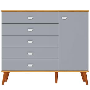 A Cômoda Infantil Bartira Ternura complementa o ambiente com 5 gavetas espaçosas e 1 porta com prateleira interna, perfeita para armazenar objetos maiores ou itens decorativos. Também fabricada em MDP FF, possui corrediças telescópicas que proporcionam abertura suave e silenciosa, além de um visual elegante e funcional.