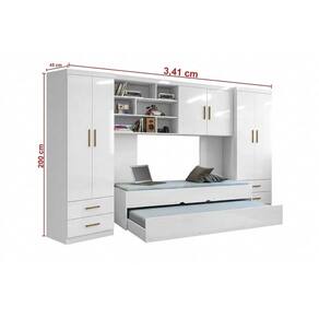 Se você procura modernidade, praticidade e segurança na hora de montar o quarto do seu filho, o quarto infantil/juvenil Chiara oferece aquele toque todo especial ao ambiente, adicionando muito espaço para organização e praticidade no dia-a-dia. Produto composto por dois guarda-roupa, módulo aéreo, cama e cama auxiliar.