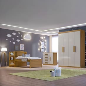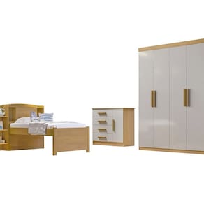 O Dormitório Angel conta com: 01 roupeiro 04 portas com excelente divisão interna, frente toda em MDF.A cama milênio 100% mdf, com baú de cabeceira, ideal para guardar objetos, brinquedos, e até mesmo roupa de cama, e ela também oferece a opção de cama auxiliar, comprada a parte. A cômoda possui 04 espaçosas gavetas e repartição lateral,frente em MDF. Confeccionada em chapa de 1,5cm, ela possui resistência e durabilidade. O dormitório Angel, é o quarto perfeito para seu filho.ATENÇÃO:A coloração das imagens do produto pode ter diferentes tonalidades dependendo do seu monitor.Ao receber o produto verifique as seguintes informações:Confira a quantidade de caixas e volumes;Consulte se o nome do comprador consta em todas as etiquetas;Verifique se as caixas não apresentam sinais de danos. Ambiente Principal: Quarto Infantil codigo_ean: 7900288209153 Complexidade da Montagem: Alta: deve ser montado por um montador especializado Cor: Cinamomo / Off White Cor do Produto: Cinamomo / Off White Escala de Brilho: Semi Brilho( O Off White Possui Brilho) Informações Complementares: A cantoneira com as prateleiras da cama podem ser montadas em qualquer um dos lados Linha ou Coleção: Angel Manual de Montagem e Instalação: https://cdn2.madeiramadeira.com.br/atributo/d-doro-moveis/3091603-5411-17532929230686.pdf Marca: D Doro Material Principal: MDF Medida de Cada Item: Guarda-roupa : 218cm x 138cm x 48cm Cama: 100cm x 130cmx 224cm Cômoda: 92cm x 110cm x 44cm modular: Não Necessita Montagem: Sim O Conjunto Contém: Cama/Cômoda/Guarda-Roupa Origem do Produto: Nacional Peso: Guarda-roupa:110kg, Cama: 60kg, comoda:43,2kg Pintura Atóxica: Sim Porta Janelada: Não Possui Portas: Sim Quantidade de Portas: 05 Recomendações de Uso, Manutenção e Limpeza: Pano levemente umedecido e pano seco. Não utilizar produtos abrasivos Sistema de Montagem: Parafusos e cavilha Suporta Até (kg): 250KG