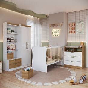 Acompanha Colchão: Não Altura do Conjunto: 182 cm Ambiente: null Ambiente Principal: Quarto Infantil Cor: Branco / Mel Estrado com Regulagem de Altura: Sim Informação Complementar: 1x Berço Infantil em Mdp 91,5x133,5cm Plasbaby Branco / Natural Largura: 133,5 cm Altura: 91,5 cm Peso: 20 kg Profundidade: 68,3 cm Necessita Montagem: Sim