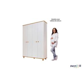 - Guarda Roupa Infantil c/ 4 Portas (2 Ripadas) Cupcake Off White/Nature - Permóbili Baby - 1 unidades