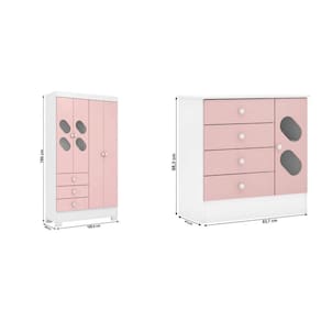 Quarto Infantil Completo Guarda Roupa 4 Portas 3 Gavetas com Cômoda Stella Espresso Móveis Branco/Rosa. Apresentamos Quarto Infantil Stella, uma combinação sofisticada de móveis para adicionar elegância e funcionalidade ao seu espaço. Inclui um guarda-roupa e uma cômoda, ambos construídos com materiais de alta qualidade e detalhes refinados. O guarda-roupa oferece excelente distribuição interna, enquanto a cômoda complementa o conjunto com estilo e praticidade. É a escolha perfeita para transformar seu ambiente. Ean: 7896614979114