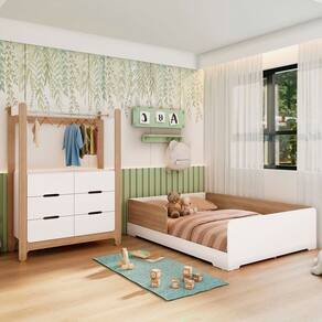 Com design inspirado em móveis planejados e acabamento sofisticado, o conjunto Olivia e Mark transforma o quarto infantil em um espaço seguro, versátil e cheio de estilo. Altura do Conjunto: 165 cm Ambiente Principal: Quarto Infantil codigo_ean: 7900288263889 Complexidade da Montagem: Média: pode ser montado por mais de uma pessoa e/ou necessite de maior conhecimento para montagem Cor: Branco/ Louro Freijó Grann Cor do Produto: Branco/ Louro Freijó Grann Escala de Brilho: Fosco Largura do Conjunto: 193 cm Linha ou Coleção: Olivia / Mark Manual de Montagem e Instalação: https://cdn2.madeiramadeira.com.br/atributo/ferpa-wood/3258579-6578-17594956016937.pdf Marca: FD Material Principal: MDF Medida de Cada Item: Cama: 193cm x 143cm x 48cm, Guarda-Roupa: 165cm x 120cm x 48cm modular: Não Necessita Montagem: Sim O Conjunto Contém: Cômoda/Guarda-Roupa Origem do Produto: Nacional Peso: Cama: 61kg, Guarda-Roupa: 64kg Pintura Atóxica: Não Possui Portas: Não Recomendações de Uso, Manutenção e Limpeza: Limpar somente com um pano levemente umedecido. Indicado para ambientes internos Sistema de Montagem: Parafusos, cavilhas e minifix Suporta Até (kg): 80