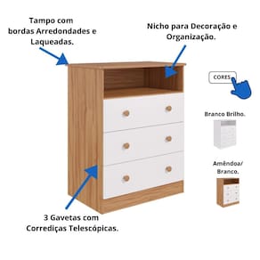 -Quantidade de Gavetas: 3 (peso suportado 4 kg)