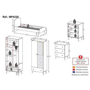 Os produtos serão entregues desmontados e não disponibilizamos o serviço de montagem. Acabamento: Pintura UV | Tonalidade: Branco | Material: MDF | Referência do Modelo: MP4330 | Coleção: Doçura | Sistema de Montagem: O produto acompanha manual de montagem juntamente com kit ferragem. O produto será entregue desmontado e não disponibilizamos o serviço de montagem. | Instruções de Cuidado: Limpar com pano seco para retirar o pó. Não utilizar produtos químicos ou abrasivos. Não aplicar lustra móveis. | Produto Composto por: 1 cama, 1 guarda-roupa, 1 cômoda, manual de montagem e kit ferragem. | Altura Montado: | Largura Montado: 80 | Profundidade Montado: | Tamanho (L x A x P): 80 x 202,5 x 44,5 | Peso do Produto: 128 | Corrediça: Telescópica | Inclui Berço: Não | Acompanha Colchão: Não | Inclui Guarda-Roupa: Sim | Inclui Gaveteiro: Não | Material do Puxador: ABS | Quantidade de Portas: 2 | Quantidade de Gavetas: 4 | Quantidade de Puxadores: 10 | RBN: 17352335011 | Quantidade de Pés: 10 | Quantidade de Peças: 3 | Material dos Pés: Polipropileno | Produto: Conjunto de Quarto | Portátil: Não | Registro INMETRO: N/A | Fabricante: Multimóveis | Regulamentado pelo INMETRO: Não | Garantia do Fabricante: 3 | Requer Montagem: Sim | Altura do Produto com Embalagem: 49 | Largura do Produto com Embalagem: 90 | Comprimento do Produto com Embalagem: 195 | Peso do Produto com Embalagem: 128 | Nome do Produto no Fornecedor: Quarto Infantil Completo para Colchão 188x78cm Doçura Multimóveis MP4330 Branco/Cinza/Rosa | Estado de Origem: RS | Produto precisa de Montagem?: Sim | Tempo de Garantia: 3 meses | Descrição do Tamanho: L x A x P: 80 x 202,5 x 44,5 cm | Tipo de cama: Solteiro | Marca: Multimóveis | Tamanho da cama: Solteiro | Quantidade de mudos: 0 | Tipo de madeira: MDF | Comprimento da cama: 193 cm | Altura da cama: 83 cm | É Kit de fábrica: Sim | Estilo: Moderno | Largura da cama: 85 cm | Idade recomendada: 5-7 anos | Idade: Crianças | Quantidade de caixas de embalagem: 05 | Destaque 1: Produzido em MDF: maior durabilidade e resistência. | Destaque 2: Cama suporta até 100kg e é indicada para colchão 188x78cm. | Destaque 3: Pés retrô em polipropileno e puxadores em ABS: promove estabilidade e facilidade no manuseio. | Destaque 4: Guarda-roupa conta com um cabideiro incluso. | Destaque 5: Tamanho do produto montado (L x A x P): 80 x 202,5 x 44,5 cm | Tipo de Material: Madeira | Baterias são necessárias?: Não | Certificação de teste externa: N/A | Is Fragile: Sim | Dimensões do item P x L x A: | Quantidade de itens: 1 | da peça: | Peso do pacote: 128 Quilogramas Cor: Branco/Cinza/Rosa