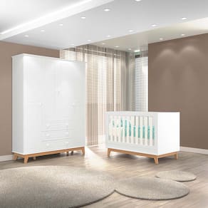 Transforme o quarto do seu bebê com o Quarto Infantil Duplo Tuboarte que acompanha Guarda-Roupas Henry e Berço Lucca. Fabricados 100% em MDF, o berço 2 em 1 se adapta ao crescimento do seu filho, e os pés estilo retrô trazem elegância. O guarda-roupas com 4 portas e 3 gavetas proporciona amplo espaço de armazenamento. Este conjunto oferece conforto, sofisticação e aconchego, criando um ambiente perfeito para o seu pequeno.