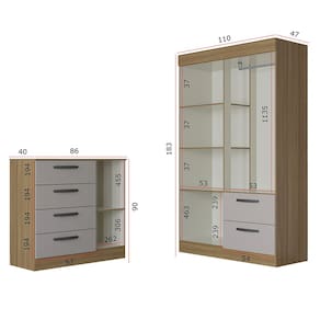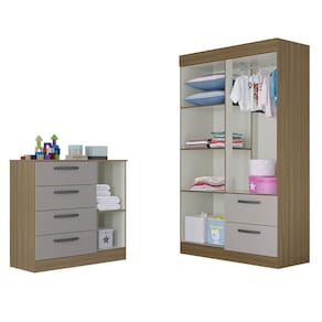 Quarto Infantil Guarda Roupa 4 Portas 2 Gavetas e Cômoda 4 Gavetas 1 Porta Loly Poquema - Cinza