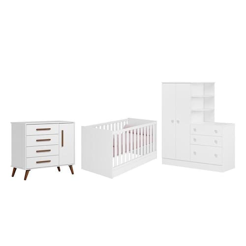 Jogo de Quarto com Guarda Roupa Infantil com Cômoda Doce Sonho, Berço Mini Cama Doce Sonho e Cômoda Sapateira Encanto - Qmovi