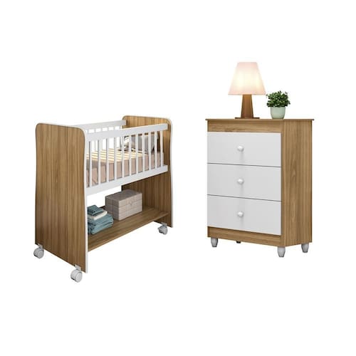 >Descrição: O Mini Berço Rubi Peternella é produzido em MDP bio-sustentável de 15 mm. Aprovado e certificado conforme regulamento do Inmetro, conta ainda com pintura UV de alto brilho, suporte para mosquiteiro, quatro rodízios... sendo 02 com trava e 02 sem trava, suas grades fixas de pinos revestido proporcionam uma maior segurança ao bebê . O colchão D20 que também é certificado está incluso no volume do produto. >Largura: 89 >Altura: 85 >Profundidade: 50 >Peso: 7,72 Produto: Cômoda Ternura 3 Gavetas Nature/Branco - Peternella