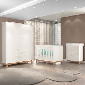 Apresentamos o Quarto Infantil Triplo 100% MDF Tuboarte com Berço 2 em 1 Lucca Guarda-Roupas Henry e Cômoda Natan! Transforme o quarto do seu bebê com nossa linha infantil 100% MDF, oferecendo sofisticação e conforto. O berço 2 em 1 se adapta ao crescimento do seu filho, enquanto os pés estilo retrô adicionam um toque elegante. O guarda-roupa com 2 portas e 2 gavetas e a cômoda com 3 gavetas garantem espaço e organização. Crie um ambiente perfeito para seu pequeno com móveis funcionais e estilizados.