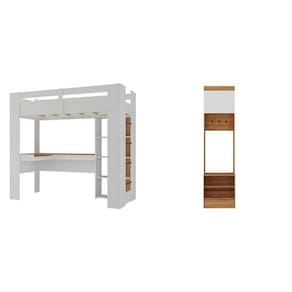 Transforme o quarto com o Quarto Juvenil Completo com Beliche e Sapateira Addis. A Cama Alta Multifuncional combina praticidade com escrivaninha e penteadeira integradas, além de prateleiras e uma porta basculante para melhor organização. A Sapateira Viena, com 1 porta e cabideiro, acomoda até 10 pares de calçados, otimizando o espaço do ambiente. Feitos em MDP com acabamento em Finish Foil, esse conjunto moderno oferece funcionalidade e design para um quarto completo e bem organizado. Possui Portas: 01 Possui Rodízio: Não Acompanha Colchão: Não Altura do Conjunto: 204.5 cm Ambiente: null Ambiente Principal: Quarto Cor: Branco/Nogal Informação Complementar: 1x Cama Alta Multifuncional com Escrivaninha Penteadeira Branco/Nogal Largura: 192 cm Altura: 180 cm Peso: 83 kg Profundidade: 95 cm Necessita Montagem: Sim