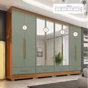 2x Guarda-roupa 2 Portas com Espelho Cinamomo / Verde Largura: 84 cm Altura: 222,5 cm Peso: 69,45 kg Profundidade: 46,5 cm Necessita Montagem: Sim