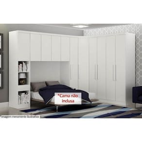 Quarto Casal Modulado Rizon 5 Peças (1 Armário Ponte + 1 Closet + 2 Guarda Roupas + 1 Complemento) QCM03 Branco - Novo Horizonte Abaixo segue os produtos do KIT: Quarto Casal Modulado Rizon 5 Peças (1 Armário Ponte + 1 Closet + 2 Guarda Roupas + 1 Complemento) QCM03 Branco - Novo Horizonte Módulo Guarda Roupa Rizon c/ 4 Portas e 3 Gavetas Branco - Novo Horizonte