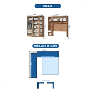 Caracter?sticas: Estrutura de MDP e fundos MDF 3mm 10 Portas 3 Gavetas Nichos Corredi?as telesc?picas Prateleiras Cabideiro de alum?nio Indica??o de cama box 138 at? 158cm * Obs. Objetos decorativo e luz de Led N?O acompanham o produto Espa?o para sapatos
