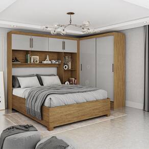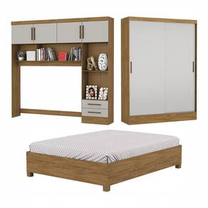 Quarto Modulado Casal 6 Portas com Cama Belém Carioca Móveis - Cinza Claro