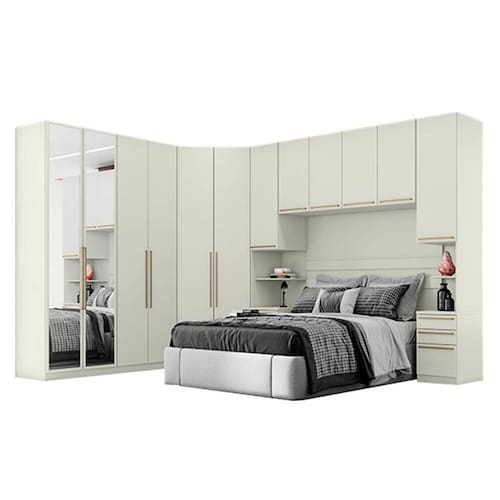 Quarto Modulado Casal Ambiente 6 Seletto 6 Peças Areia - Henn